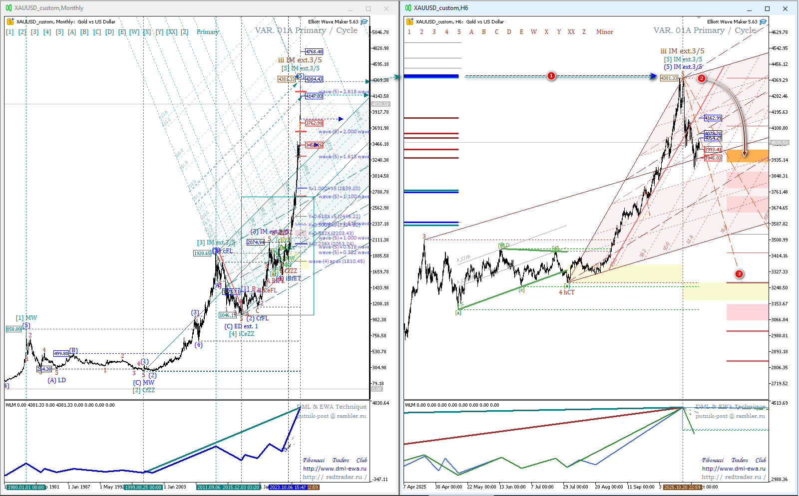 Рассматриваю три альтернативных варианта волнового сценария по золоту с разной степенью оптимизма нарост цены за тройскую унцию.