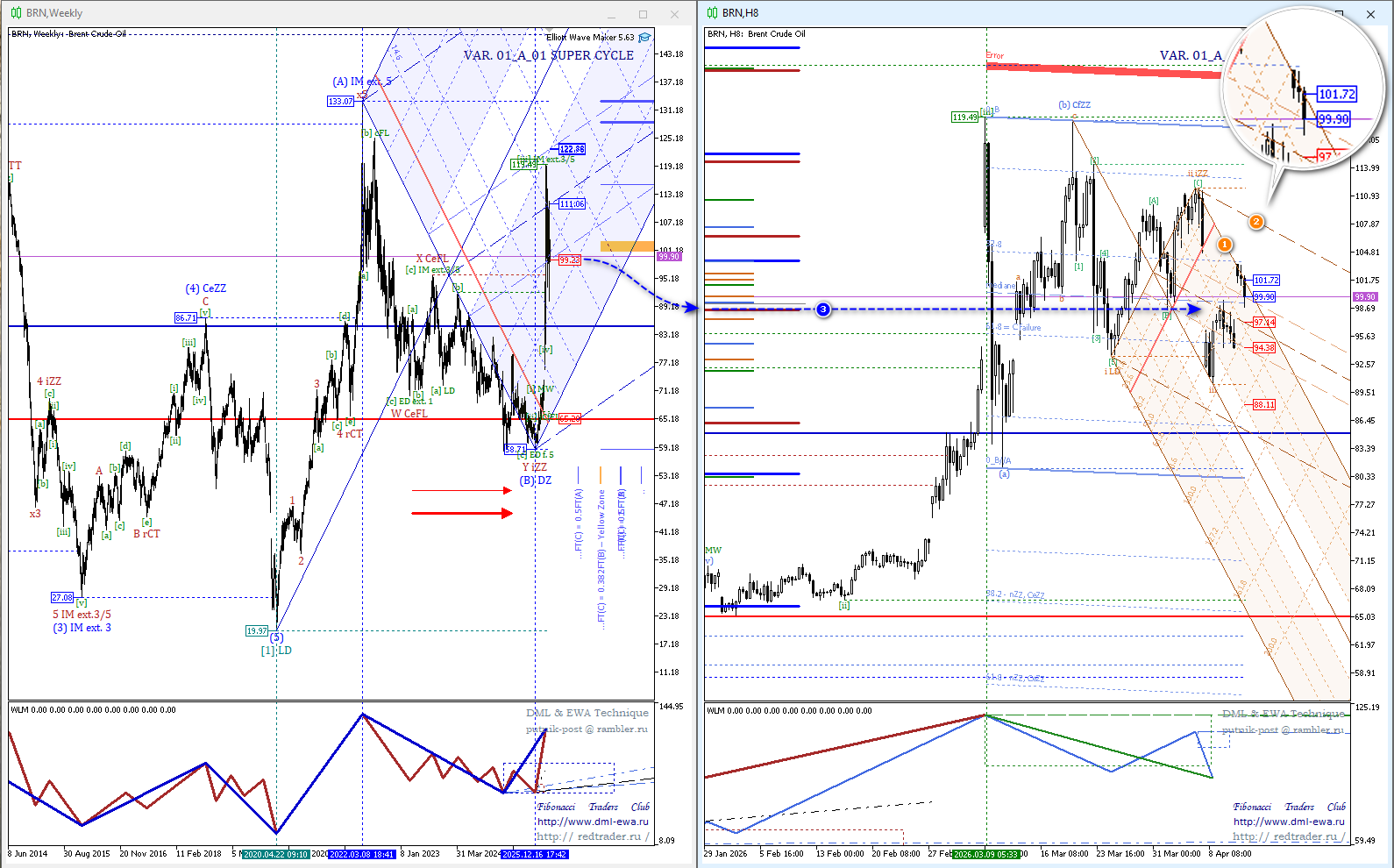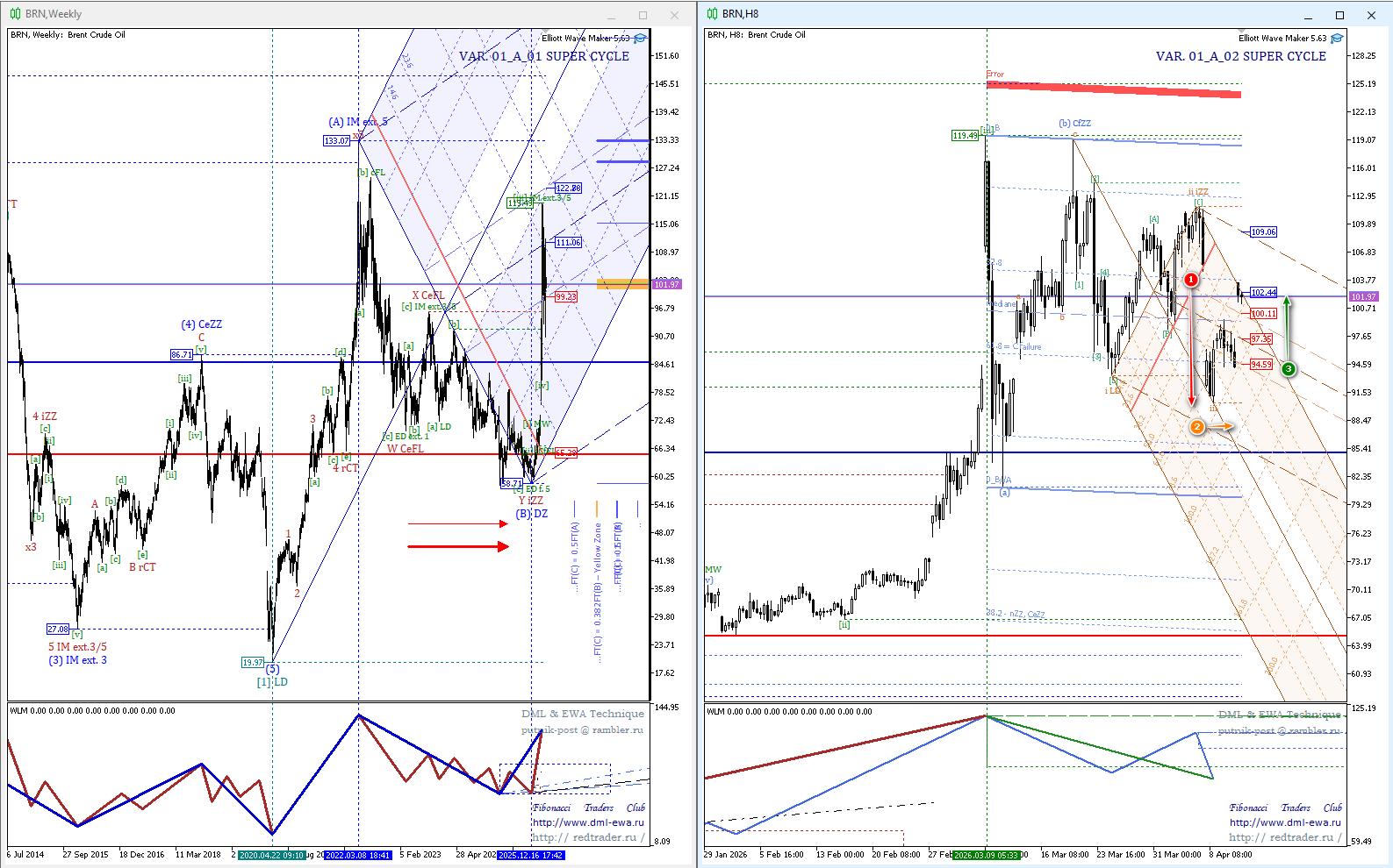Теперь разберем как данная ситуация коррелирует с данными волнового анализа по DML&EWA Technique.