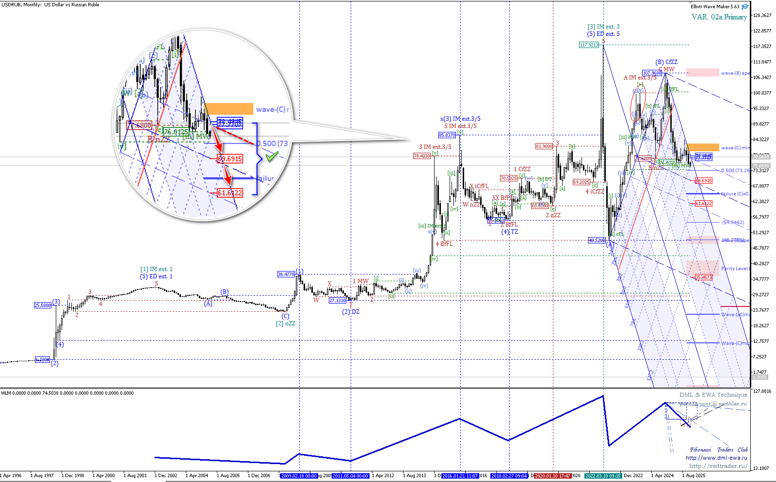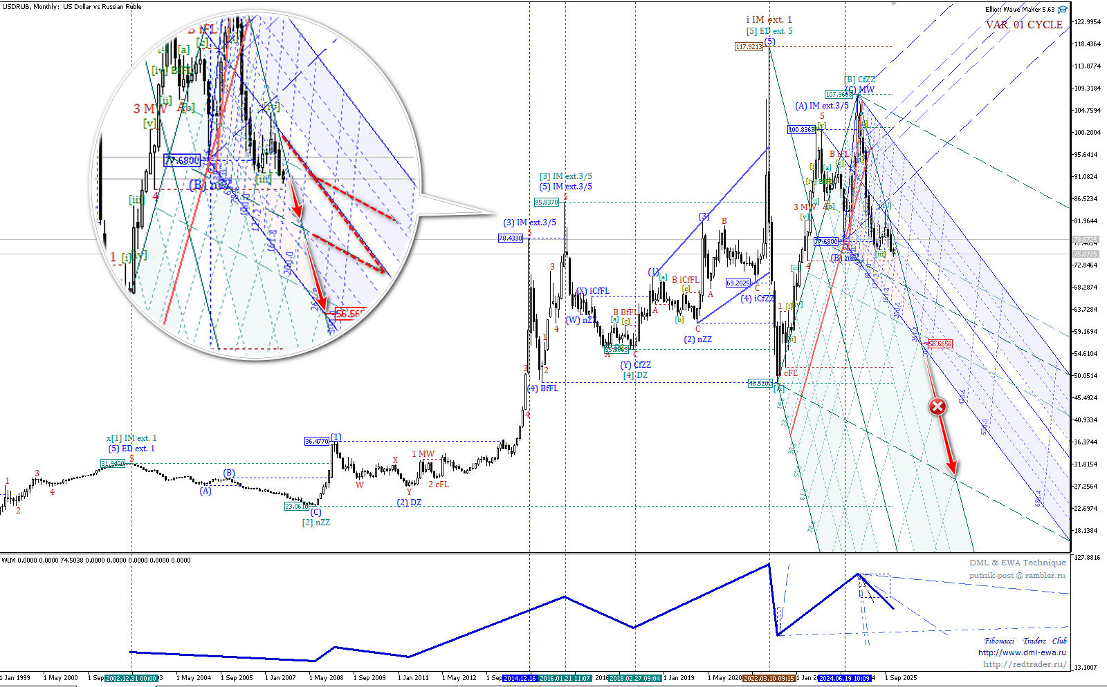 Если цена не выйдет за пределы верхней границы канала неопределённости, можно будет рассматривать цели роста курса рубля намеченные на графике с небольшой оговоркой — если ЦБ России позволит так расти курсу.