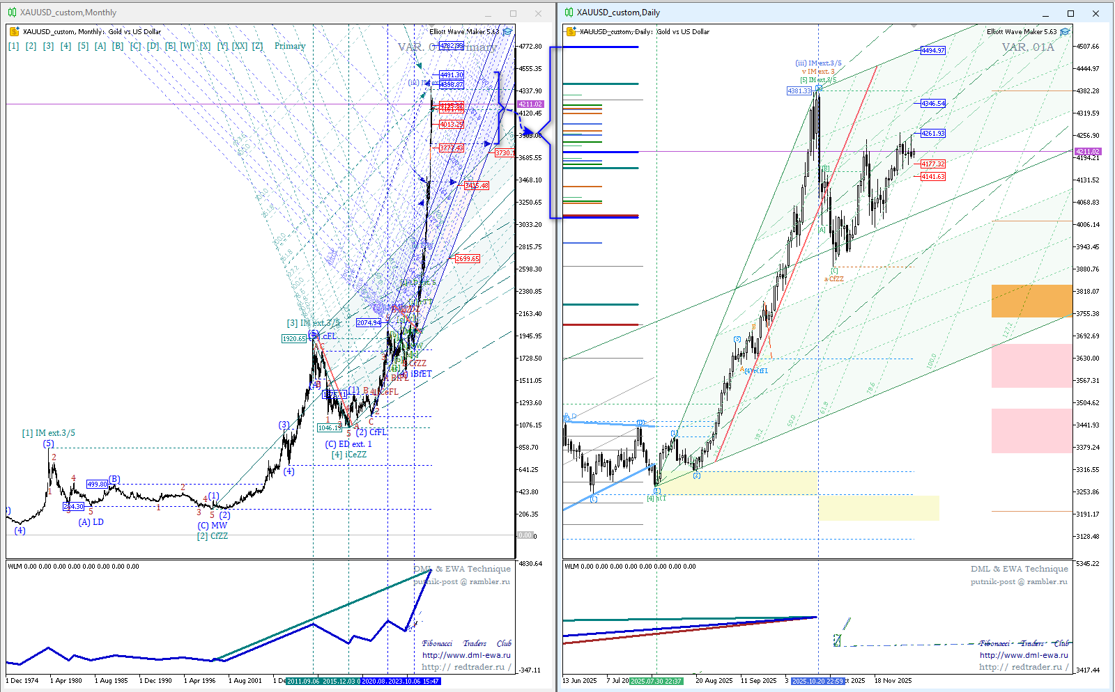 Формируется коррекция, диапазон зон сопротивления и поддержек старших волновых уровней обозначен на графике слева.