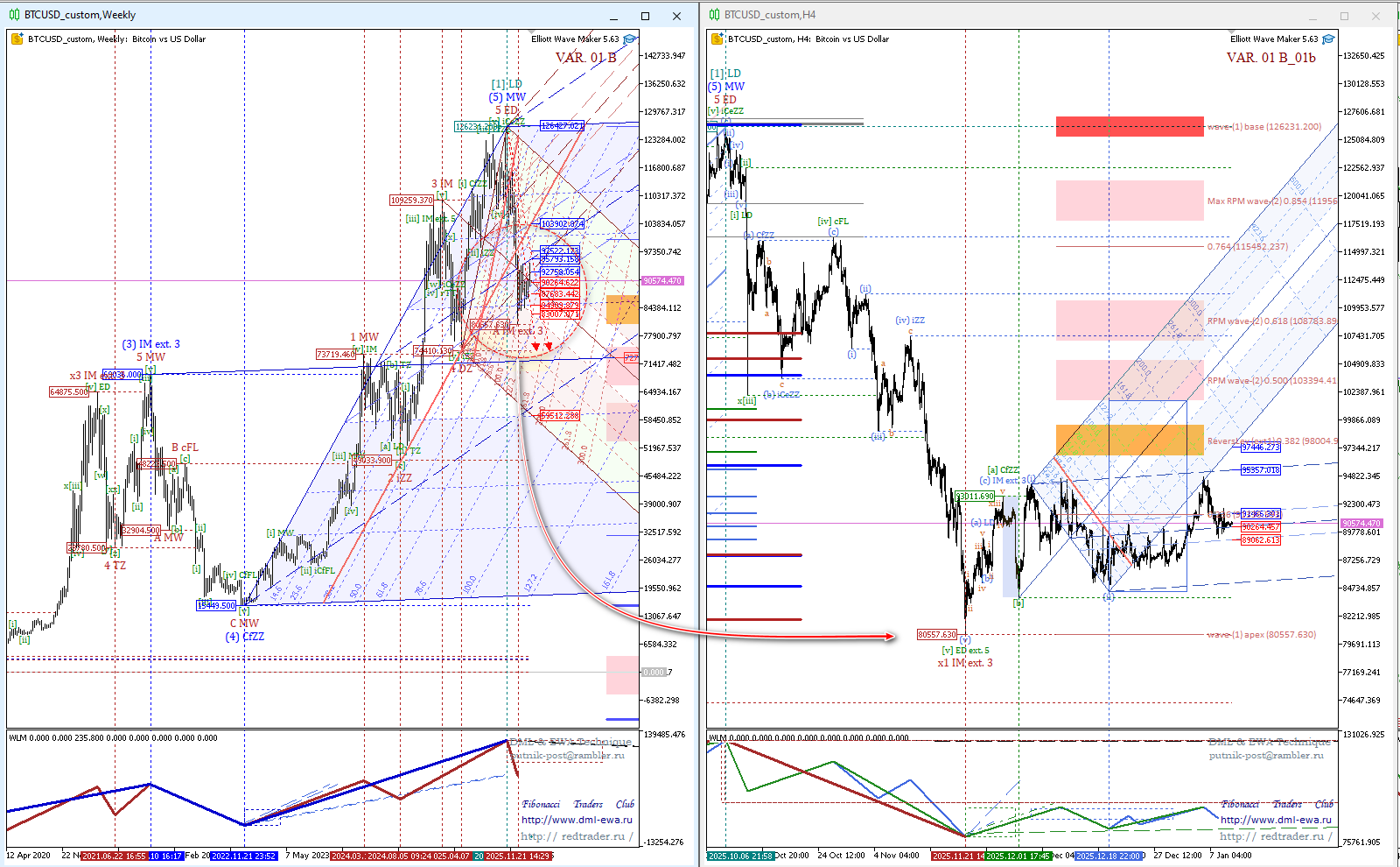 Какой вариант разметки не рассматриваю на младших волновых уровнях — результат по DML&EWA Technique — един!