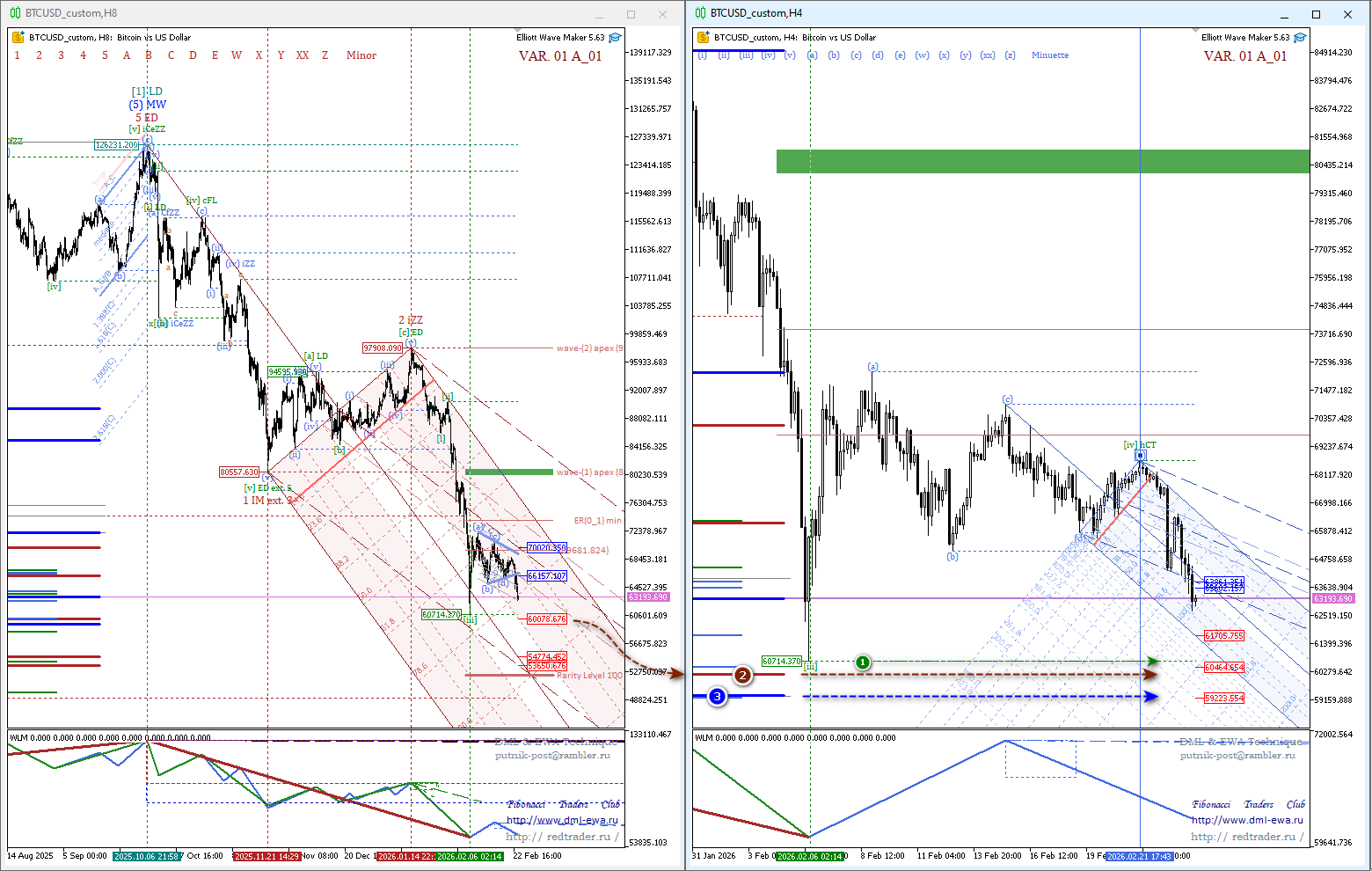 Равновероятен и как пробой с тестированием медианы вил Эндрюса волнового уровня Minor, так и отскок.
