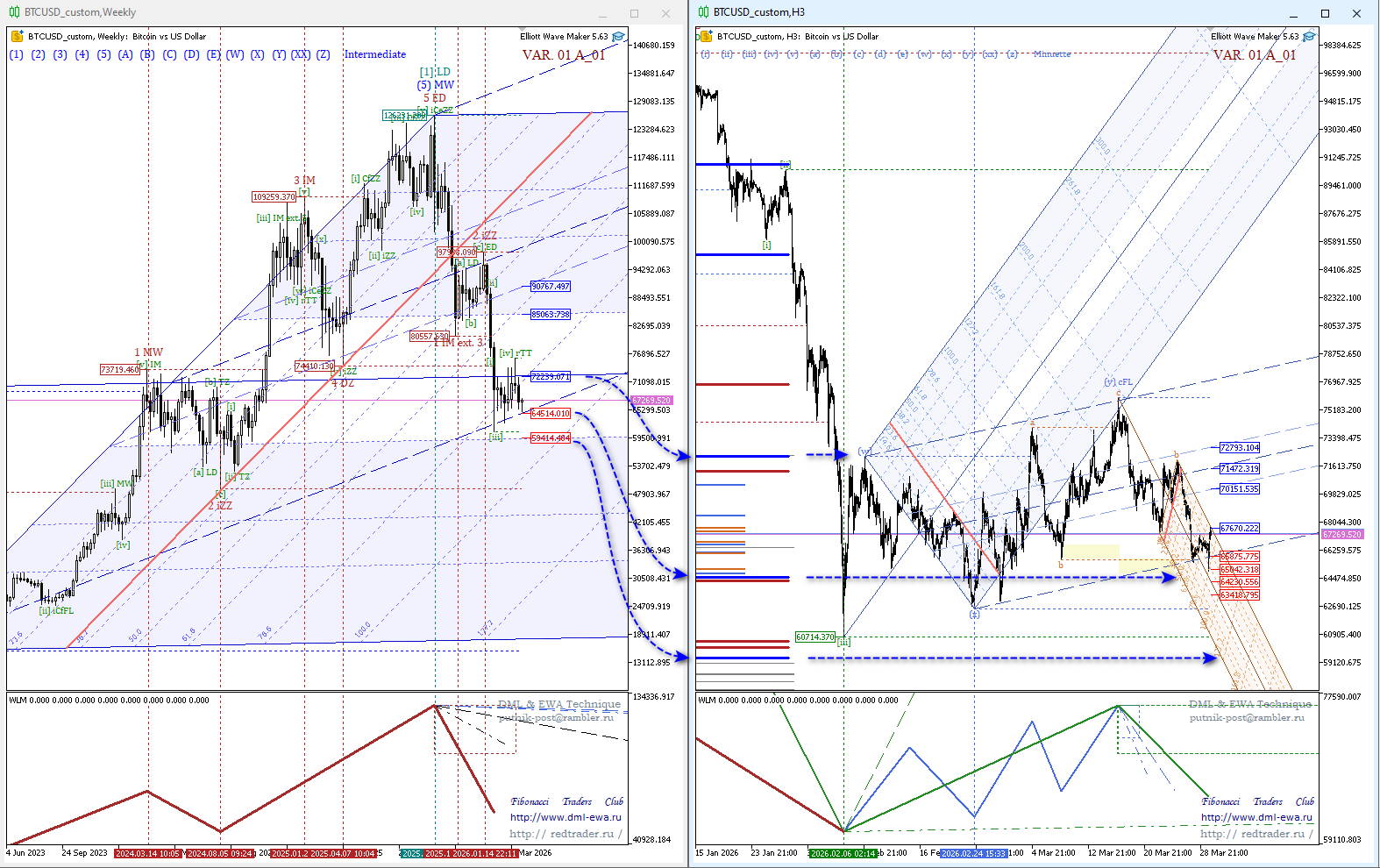 Посмотрите пример: построение сделано от волновых вершин сформированных еще в феврале, а работают инструменты весь март как среднесрочный прогноз.