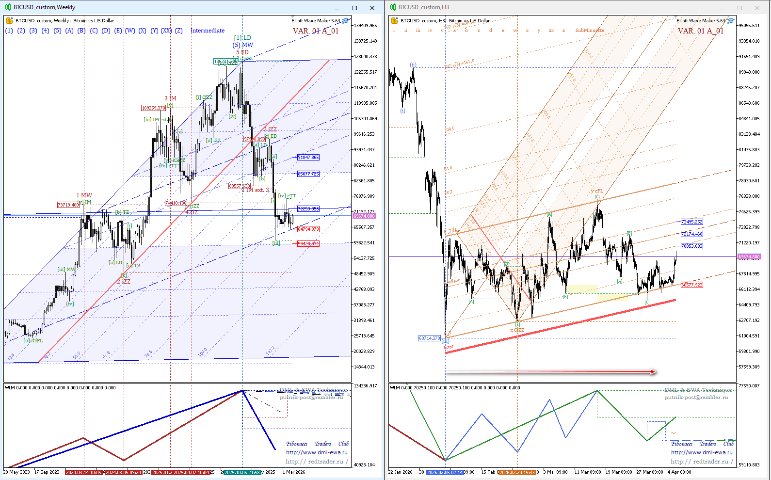Всё, что размечается от 06 февраля 2026 года, это предварительная прикидка для поиска точки завершения коррекции, то есть предварительная разметка, уточняемая по ходу развития ценового движения.