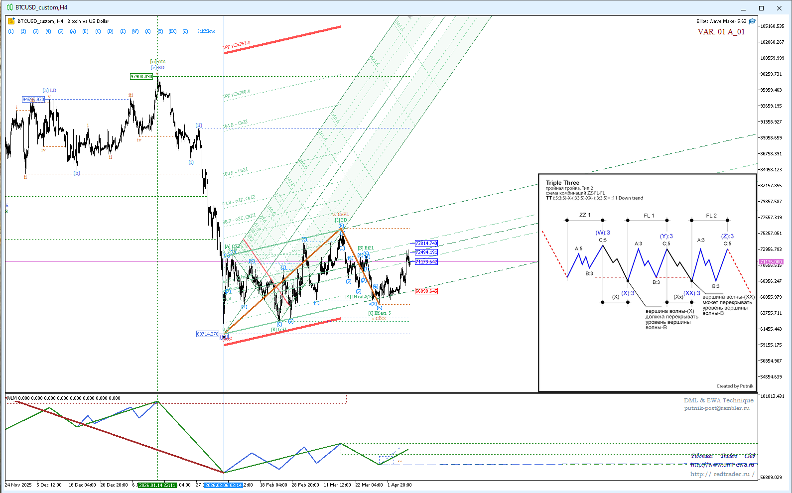 Уточнил внутреннюю структуру, и вывел другой вариант тройки — а их может быть и больше если посмотреть (просто пролистать варианты в Elliott Wave Maker щелкая ЛВК по изображению).
