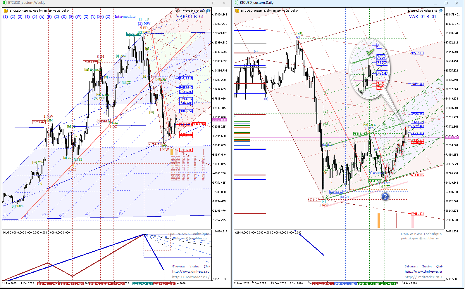 Автомат программы-советника Elliott Wave Maker предлагает вариант разметки представленный на графике слева, мой вариант разметки — на графике справа.