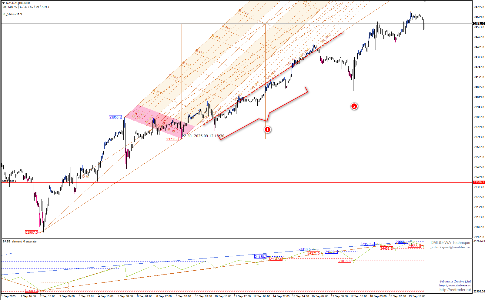 Цена тестирует медиану младшего волнового уровня SubMinuette как зону поддержки — возможно формирование отскока. - Для более точного прогноза нужно строить разворотные вилы Эндрюса от указанных ценовых экстремумов и дальнейший анализ проводить по ним.
