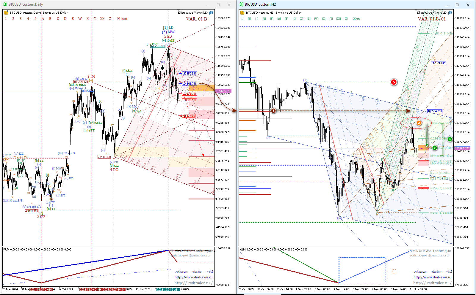 Более глубокий откат сместит риск к развитию нисходящего разворота. - Пробой уровня сопротивления волнового уровня Minor (позиция 1) с последующим пробоем уровня вершины волны-(ii) Minuette — отменит рассматриваемый волновой сценарий.